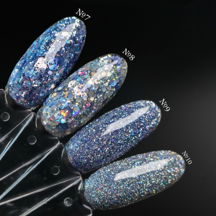 Гель-лак с измельченной поталью разного оттенка с добавлением ярких голографических шестигранников. Может использоваться в качестве однотонного покрытия либо в виде акцента в маникюре. • средне густая консистенция • покрытие в 1 слой • удобен в нанесении • плотность покрытия варьируется самостоятельно • используется любая удобная кисть для нанесения • отлично просыхает в лампе СПОСОБ ПРИМЕНЕНИЯ (ТЕХНОЛОГИЯ НАНЕСЕНИЯ): 1. Выполнить привычную обработку н/п 2. Покрыть базой и полимеризовать в лампе UV/LED - 30-60 сек 3. Нанести тонким слоем гель-лак, варьируя его плотность, затем полимеризовать в лампе UV/LED - 60 сек 4. При необходимости выполнить дополнительный слой, и также полимеризовать в лампе UV/LED - 60 сек 5. Перекрыть топом, полимеризовать в лампе UV/LED - 60 сек
